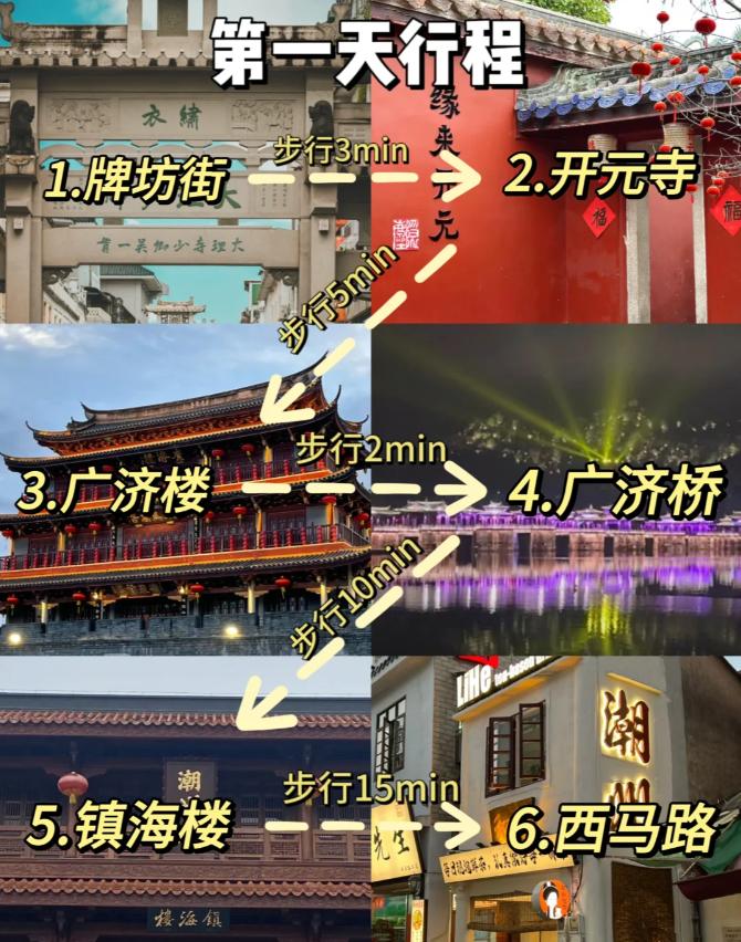 牌坊街➡️开元寺➡️广济楼➡️广济桥➡️镇海楼➡️西马路