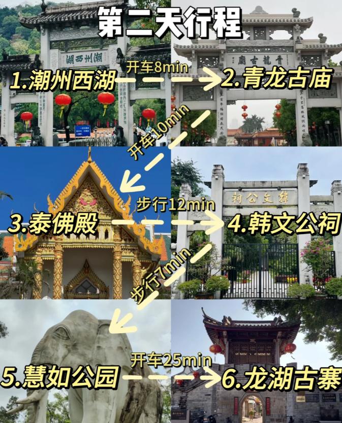 西湖公园➡️青龙古庙➡️泰佛殿➡️韩文公祠➡️慧如公园➡️龙湖古寨