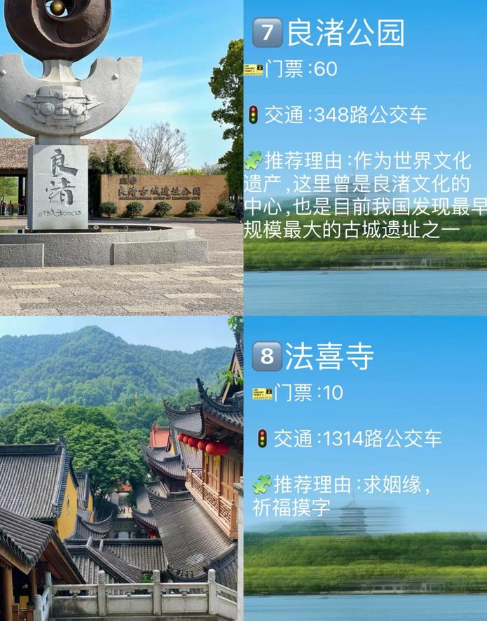 良渚古城遗址已被列入《世界文化遗产名录》,这里还有可以喂小鹿的鹿苑。