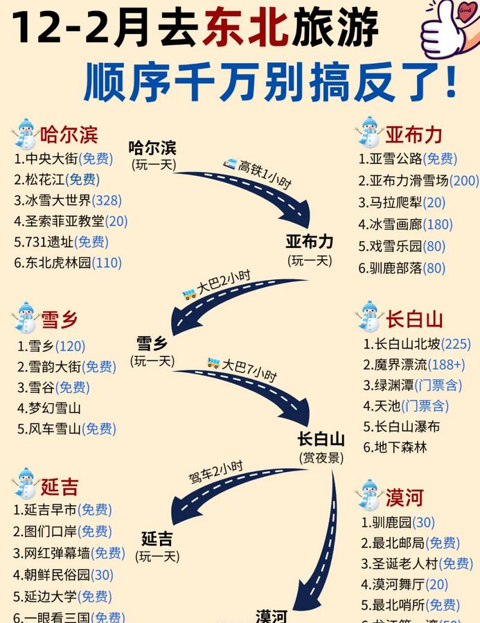 计划在12月至2月期间前往东北旅游的小伙伴们,可以参考这份简洁明了的东北旅游指南!如果这篇攻略对你有所帮助,希望能得到你的点赞❤️和收藏🌟。