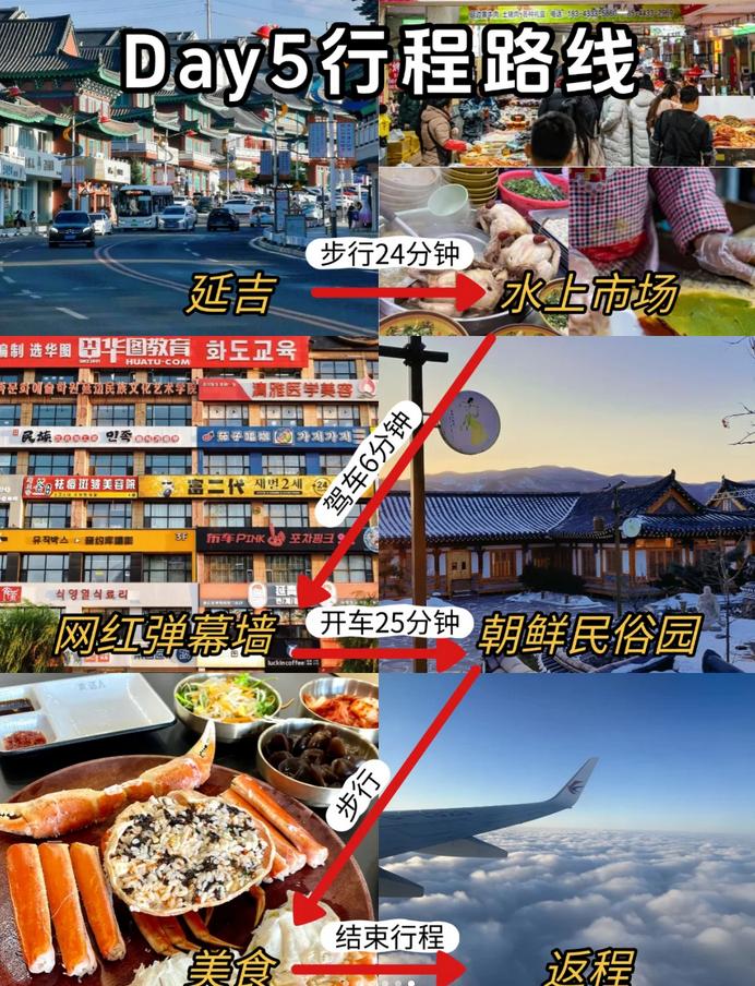 🔸 娱乐:可以在朝鲜民俗园拍照,打卡延吉大学的网红墙,游览图们边境线、日光山、西市场及水上市场。
