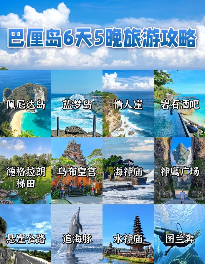 ✅如果你有六天的时间,建议游览巴厘岛南部市区、佩尼达岛出海以及乌布,整个行程既轻松又不赶时间,适合带着老人和孩子一同前往哦!