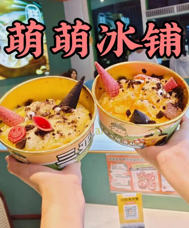 ✅ 萌萌冰铺🍧:三亚独特的冰沙绵绵冰,提供多种口味选择,口感丰富,是夏日消暑的理想选择。