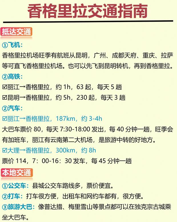 ✈️航班:前往迪庆香格里拉机场的直飞航班较为稀少,建议先飞往昆明进行中转。