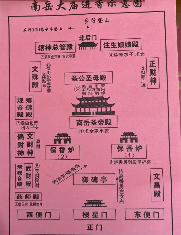 🚗 自驾游时可直接导航至南岳大庙,进入高速后会有许多请香店。不过,为了方便,建议直接前往景区门口,虽然价格稍高,但在请香时可以享受免费停车服务。