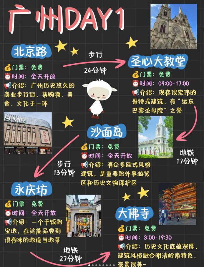 第一天:北京路➡圣心大教堂➡沙面岛➡永庆坊➡大佛寺