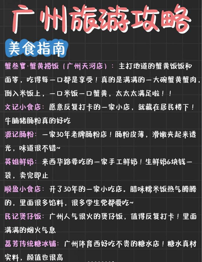 去广州之前,建议提前做好攻略,不然很容易走错路。这篇攻略是经过熬夜整理的,内容丰富,大家可以放心使用,记得保存慢慢研究哦🥳