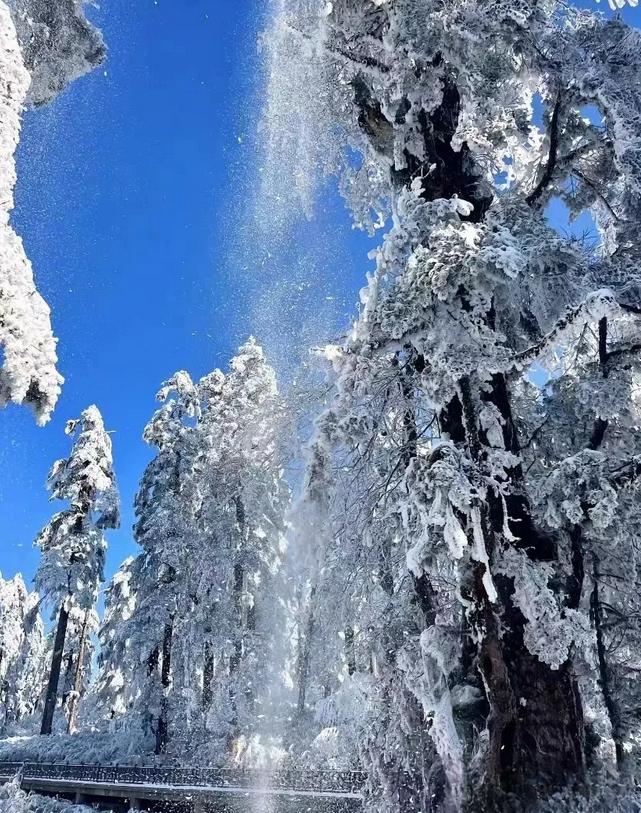 3️⃣(南方雪国)这里的雪层非常厚,堆雪人和打雪仗都没有问题,雪松和雾松随处可见。山顶地势平坦,非常适合拍照。山顶的杜园和象尔山庄是欣赏云海的最佳地点。建议穿着浅色或亮色的衣服,再搭配围巾,古风汉服也很适合拍照。