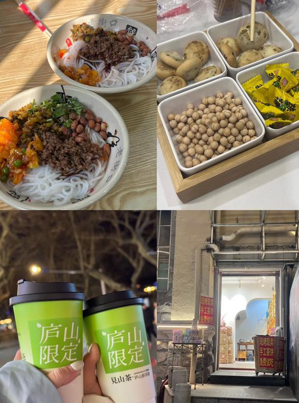 九江茶饼的起源可以追溯到唐朝,是江南四大糕点之一。此次来到庐山欣赏雪景,听闻茶饼非常受欢迎,在当地特意购买了一些作为手信。其主要内馅为芝麻,口味有四种:云雾、玫瑰、桂花和椒盐。推荐尝试云雾和桂花口味,清香四溢,搭配一壶茶更显得格外美味。