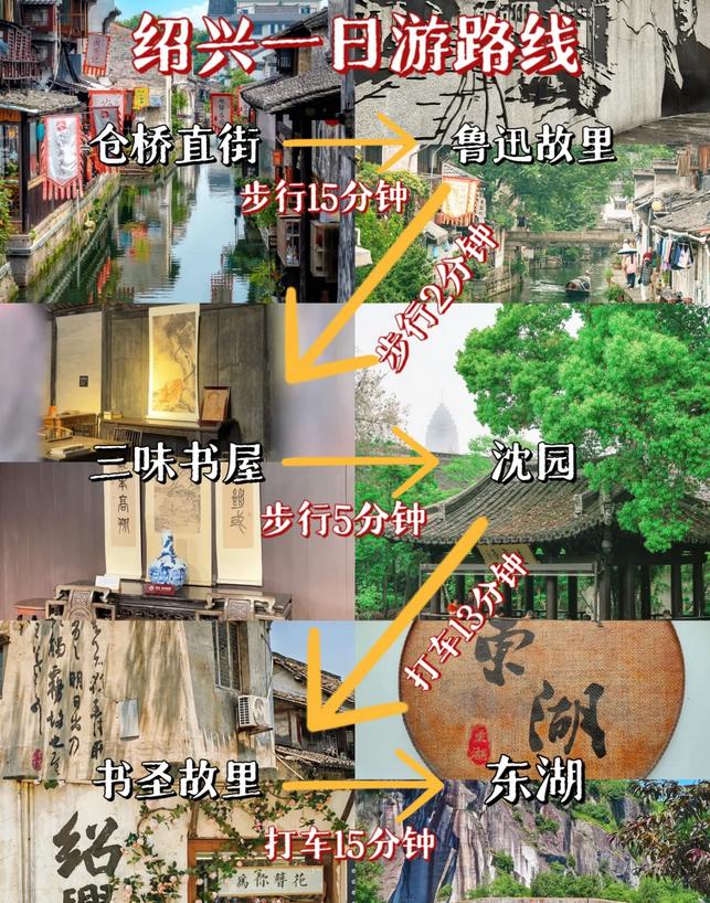 仓桥直街➡️鲁迅故里➡️三味书屋➡️沈园➡️书圣故里➡️安昌古镇