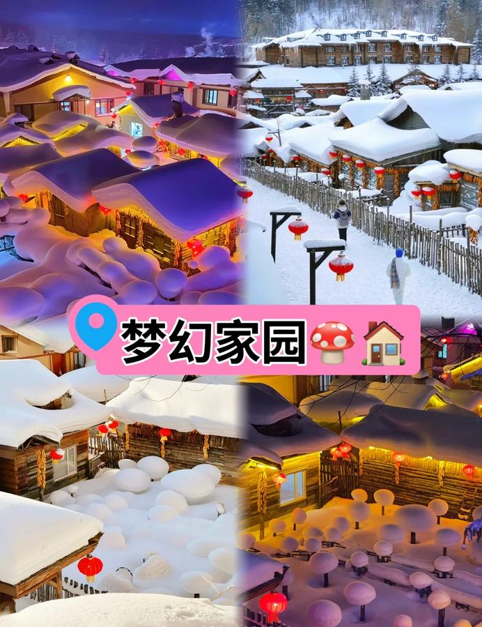2️⃣梦幻家园🏠(雪乡影视城):这里是许多影视作品的拍摄地,包括《爸爸去哪儿》、《闯关东》、《北风那个吹》和《智取威虎山》等,雪蘑菇的场景多在这里取景。