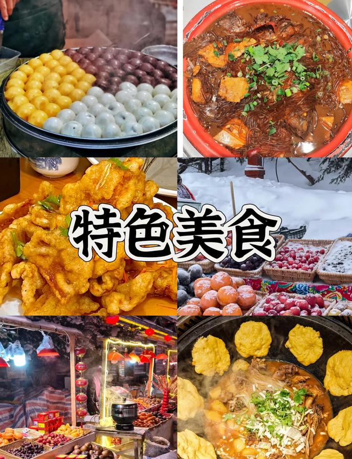 5️⃣雪乡美食推荐:铁锅炖冷水鱼、炖大鹅🪿、炖排骨、林区的山野菜、烧烤、东北菜、雪乡特色文创雪糕、马迭尔雪糕、烤冷面、冰糖葫芦、冻梨🍐、冻柿子🍅、粘豆包等美食,值得一尝。