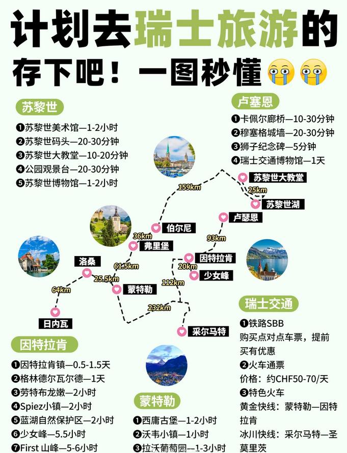 姐妹们‼️瑞士真的是一个如同童话般的美丽国家🏔️但是如果出发前没有做好充分的准备,可能会被交通搞得一头雾水、被物价吓得心慌、甚至在细节上踩雷...(这绝不是我个人的经验😭) 👉这份超实用的避坑指南绝对不能错过‼️