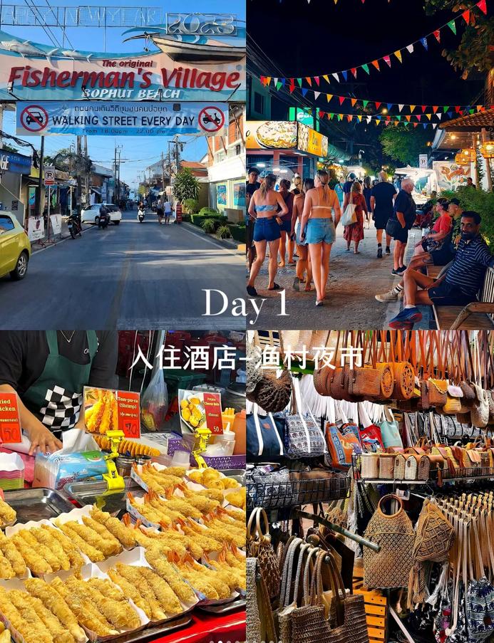 🎑渔人村夜市:这是岛上最大的夜市,提供各种新鲜的海鲜美食,还有许多手工艺品的小摊可供游览,Coco tam’s也位于此处。