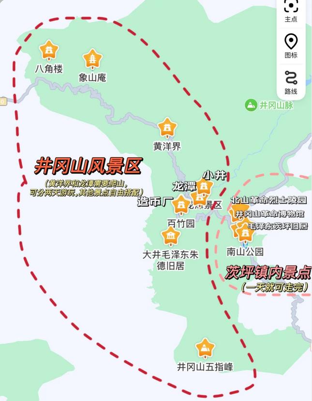 ✅井冈山的旅游主要分为两个部分