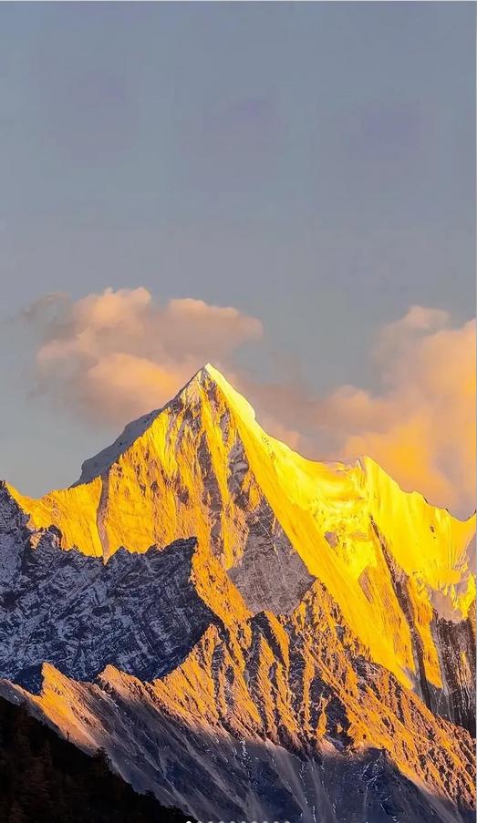 🏞清晨,第一缕阳光洒落在雪峰上,金光闪耀,整个世界被温暖的金色包裹。在这一瞬间,我停下脚步,用相机捕捉下这震撼的景象。