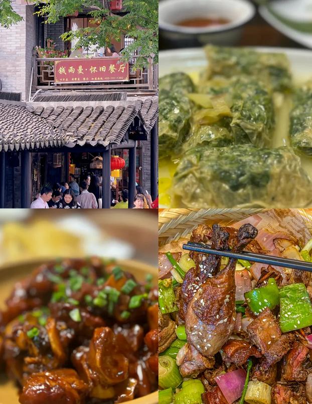 ✅钱雨曼·怀旧景观餐厅是西塘最受欢迎的排队餐厅!它位于网红樱花点位送子来凤桥的附近,推荐尝试竹网鸭,外皮酥脆,香气扑鼻,果然是招牌之作!外婆卤蛋和猪脚也相当不错,满满的胶原蛋白,酱香浓郁。此外,还有钱雨曼自酿的桃花十里酒,酒精度不高,酸甜可口,十分受欢迎!