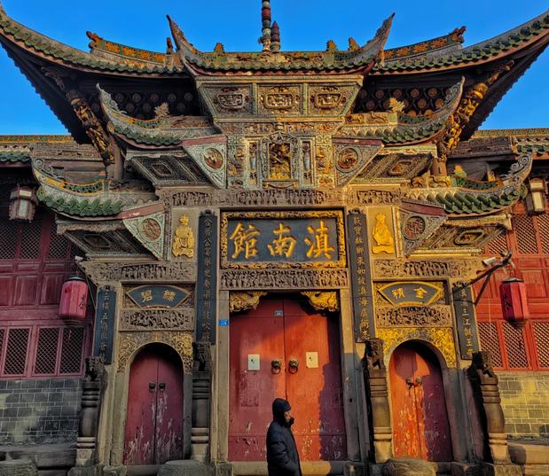 这座建筑始建于清代,采用三重檐庑殿式屋顶设计。其外观沉稳雄壮,门柱、门梁、横坊以及抱鼓座狮子均为石质材料。石梁和石枋上雕刻有高浮雕的人物形象。尽管大门紧闭,这仍是一处值得一游的古建筑!