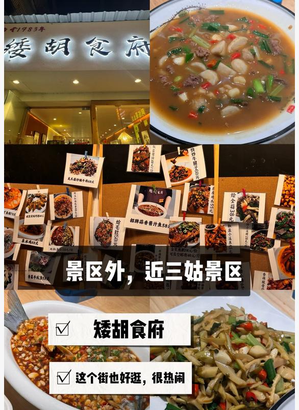 Day1: 周五下午出发,晚上抵达,入住酒店后可以直接前往矮胡食府就餐(价格透明,味道出色,推荐招牌菜蒜香酱汁鱼、酸菜小笋和牛肉芋头),用餐后可以在附近逛逛。
