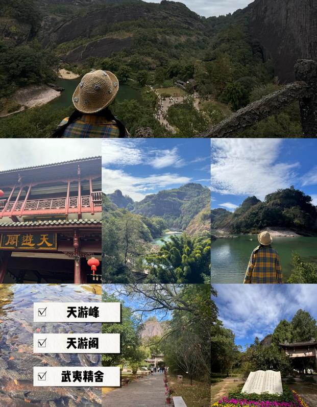 1️⃣天游峰:这个景点是必访之地,非常推荐!跟随指示牌进行游览,整个行程大约需要3小时。山顶有天游阁,供奉着彭祖、彭武和彭夷(这也是武夷山名称的来源),这里可以进行祈福活动。下山后,可以参观武夷精舍。