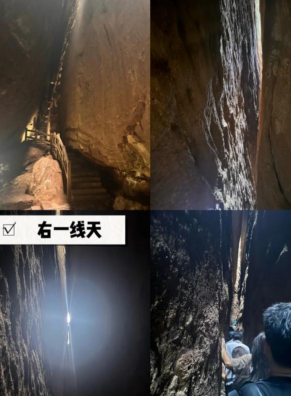 2️⃣一线天:这里分为左一线天和右一线天,建议体验右一线天,比较有趣刺激。中间部分非常狭窄,算是一种独特的体验,大约1小时即可游玩完毕。