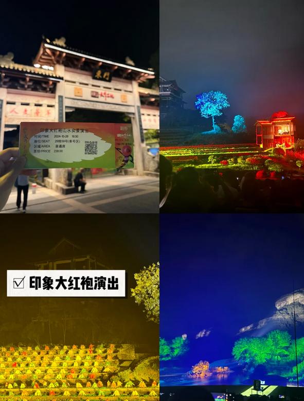 4️⃣印象大红袍演出:可以在景区南大门打车前往演出地点,滴滴司机推荐了对面的一家功夫小厨,两人套餐相当不错!我们尝到了酸笋炒五花肉和熏鹅。用餐后直接去观看演出,非常值得一看(通过当地人或民宿老板购票可以便宜很多哦)。
