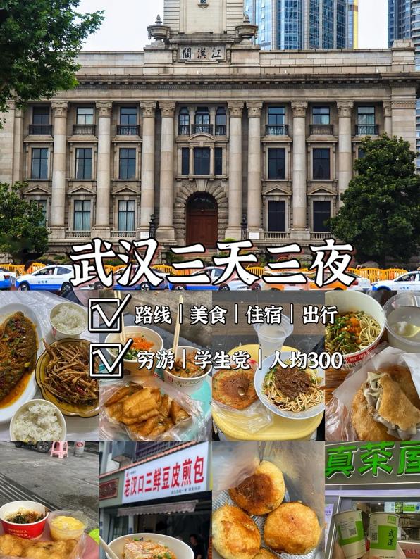 我在武汉度过了三天三夜,花费296💰(其中住宿三晚费用为155💰)。接下来分享一下我的行程规划,适合三天两夜的旅行。