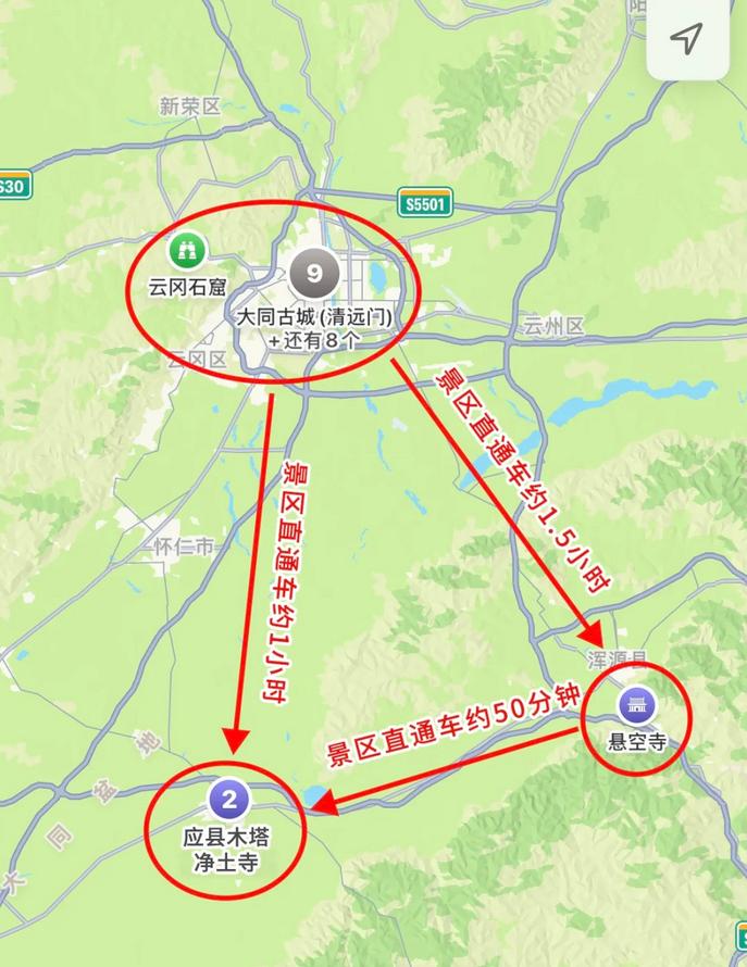 大同地处北京、太原与呼和浩特三大城市的交汇点。我选择先飞往北京,游玩了两天后再乘高铁前往大同南站,接着去呼和浩特游玩两天,最后再返回家。这样比直飞大同机场要经济实惠得多!
