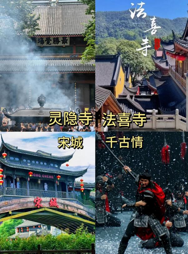 🔸下午:抵达【法喜寺】(🎫10r),在经典拍照位置打卡➡️乘公交车前往宋城➡️途中经过【梅家坞】和【云栖竹径】可以下车享用美食和游玩