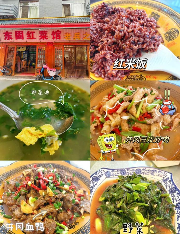 1、东固红菜馆·老兵之家:推荐菜品包括8.11午餐中的井冈血鸭、井冈豆皮炒肉、井冈野菜、井冈红军野菜汤以及红米饭。