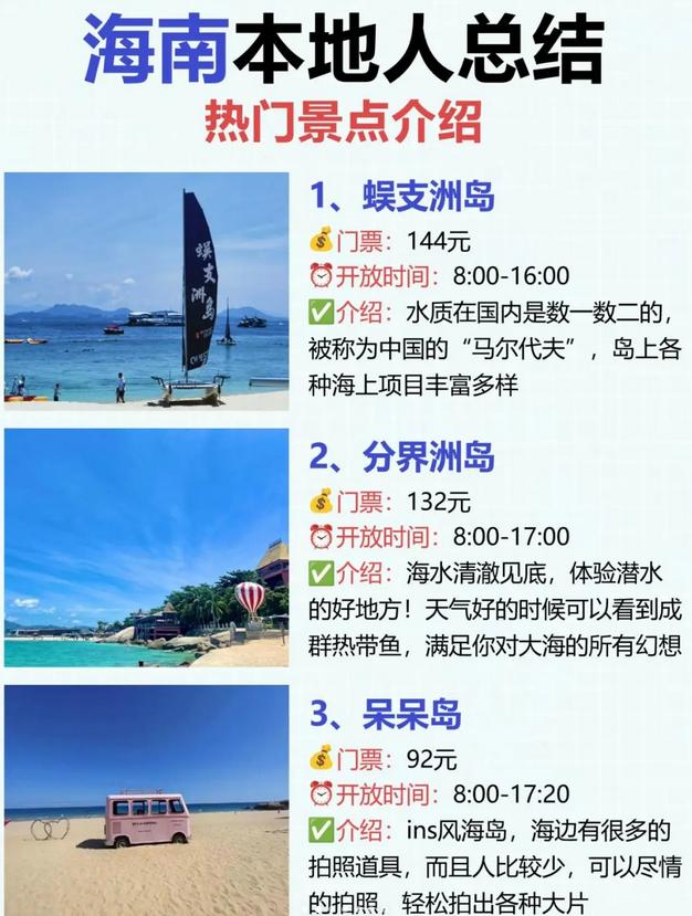 🌵蜈支洲岛:被誉为“中国的马尔代夫”,岛上提供丰富多样的水上活动。
