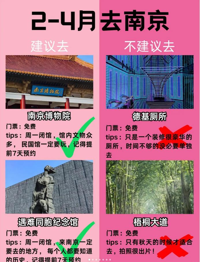 👉计划在3-4月前往南京的朋友们!如果没有做好攻略,很容易走入误区,这份游玩路线和避坑小贴士可以留着参考哦!