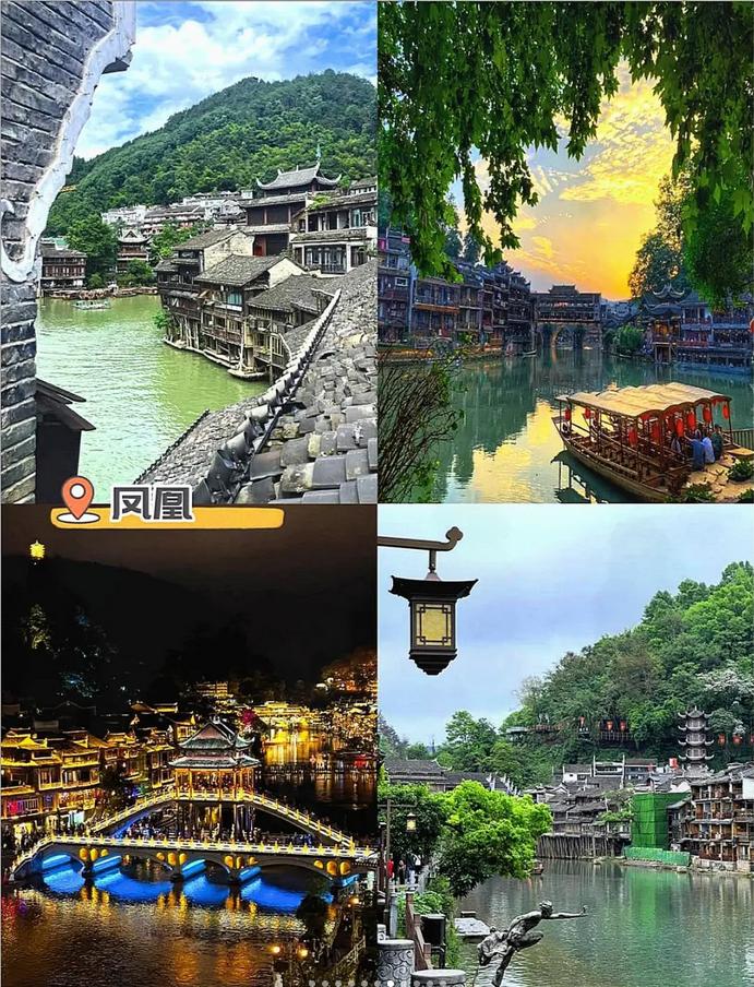 这座古城历史悠久,浓厚的苗族文化交织其中。沱江穿流而过,清澈的河水与两岸错落有致的吊脚楼相映成趣。