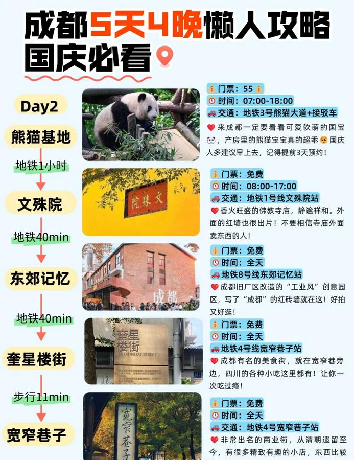 Day2: 熊猫基地→文殊院→东郊记忆→奎星楼街→宽窄巷子