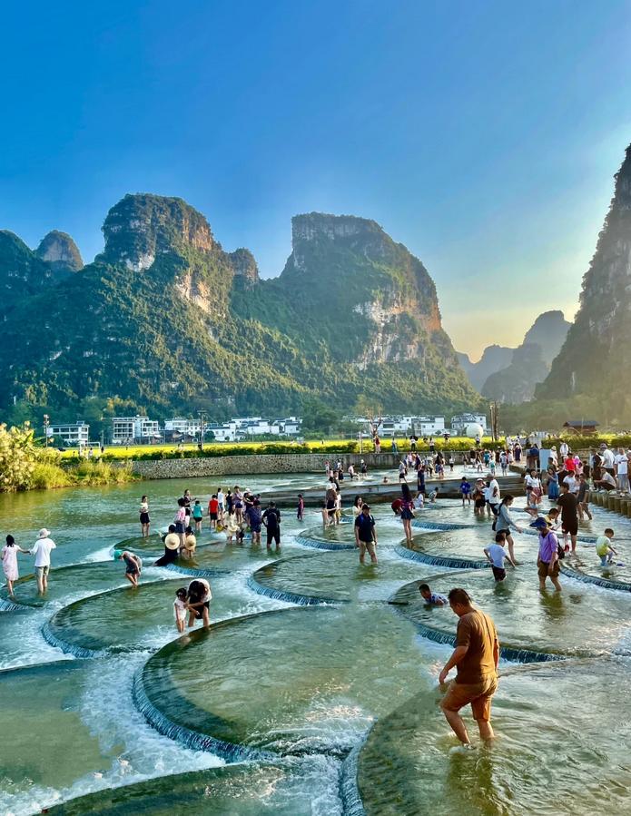 名仕田园(免费开放):如同课本中的田园山水画,适合租一辆🛵来兜风,独特的喀斯特地貌让人流连忘返,落日时的鱼鳞坝更是美不胜收。