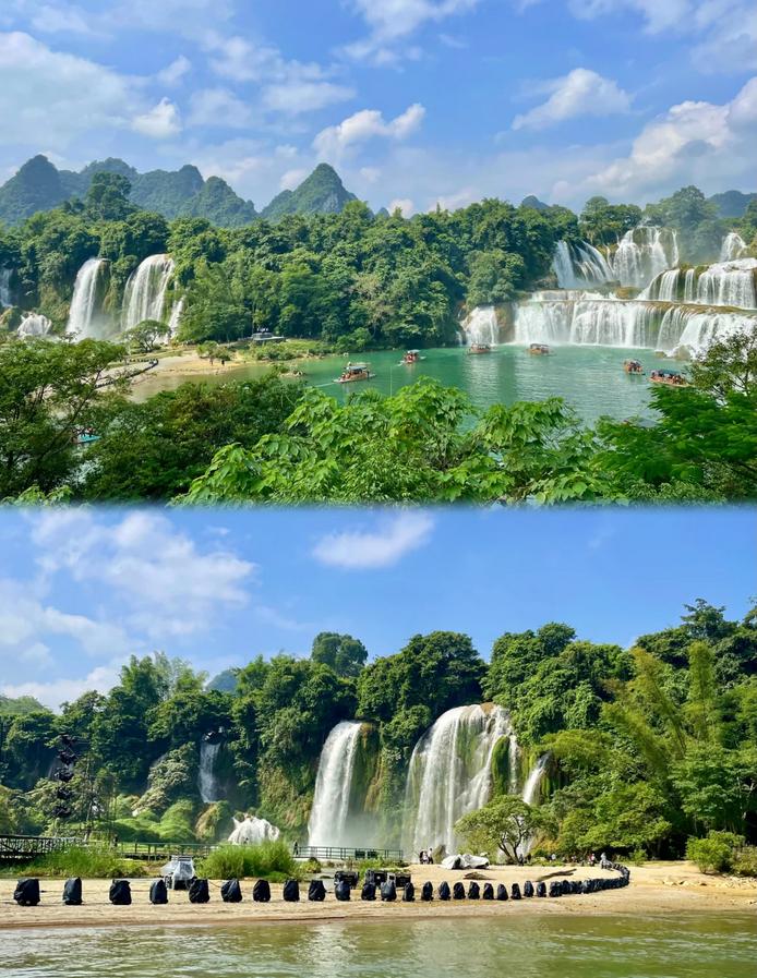 门票费用:每人110元(包括景点门票和往返观光车,不包括竹筏等项目)。这是亚洲最大的跨国瀑布,越南🇻🇳就在隔壁,可以看到对岸的建筑,乘坐竹筏可以近距离欣赏瀑布,尤其在中午12点左右,水流十分壮观。