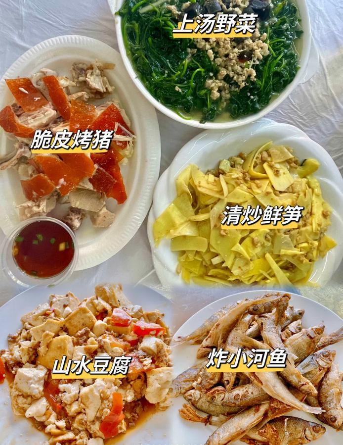在景区内可以尝到特色的壮族烤猪,外皮烤得酥脆,值得一试,还有新鲜的笋和野菜。