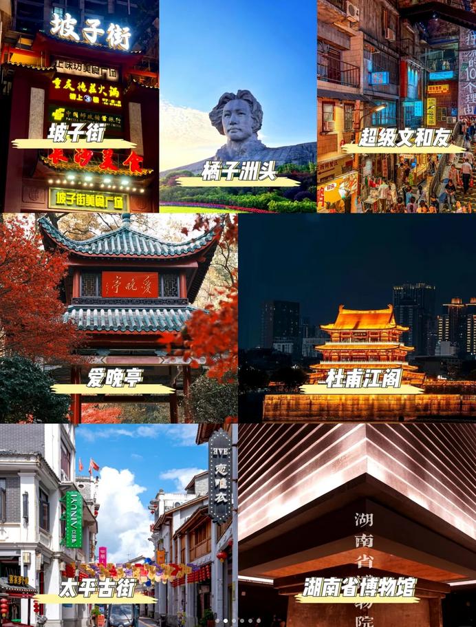 🗺推荐行程:五一广场→橘子洲→岳麓山→(爱晚亭→岳麓书院)→梅溪湖国际艺术中心。