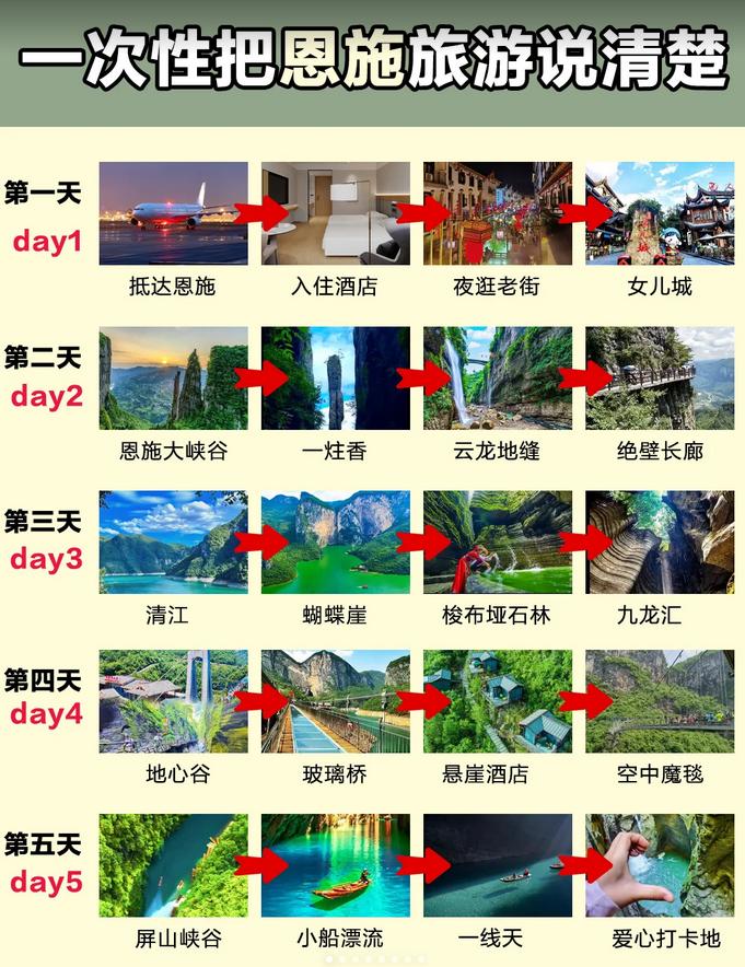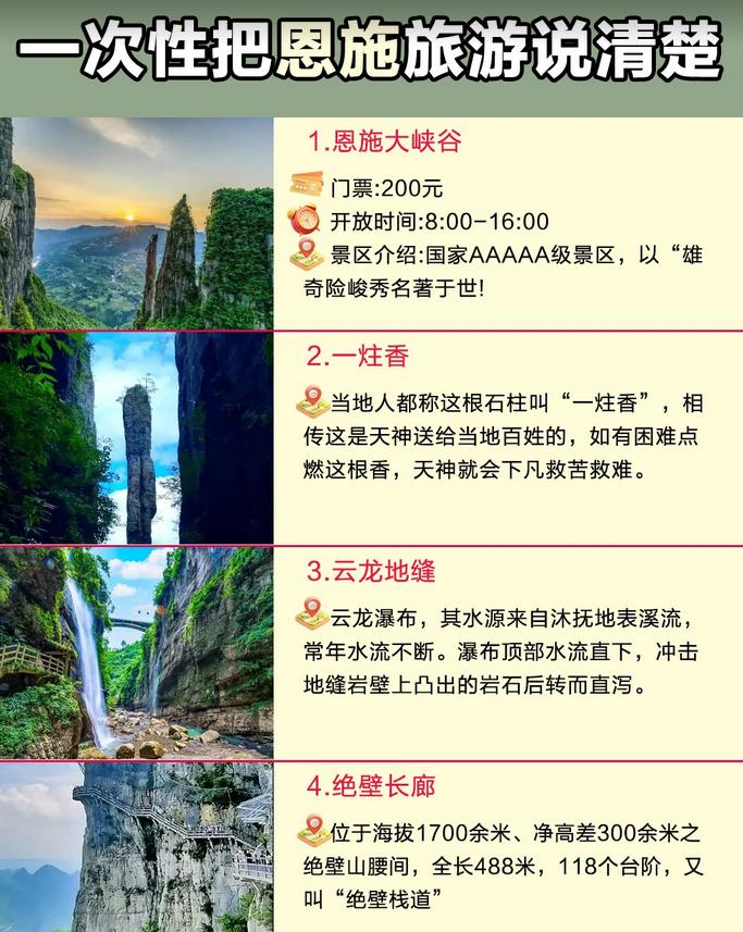 🍃利用闲暇时间,带上家人一起出游吧!这次就选择恩施,去领略峡谷、长江和古城的魅力吧🌊。