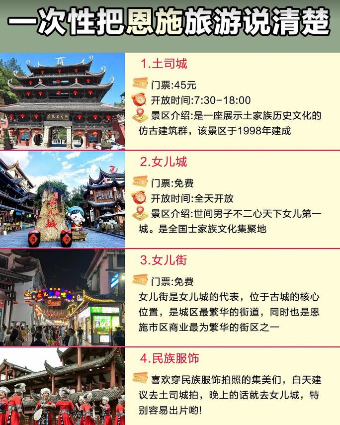 🔹 服装:根据恩施的天气情况,准备合适的服装,建议选择轻便透气的衣物。