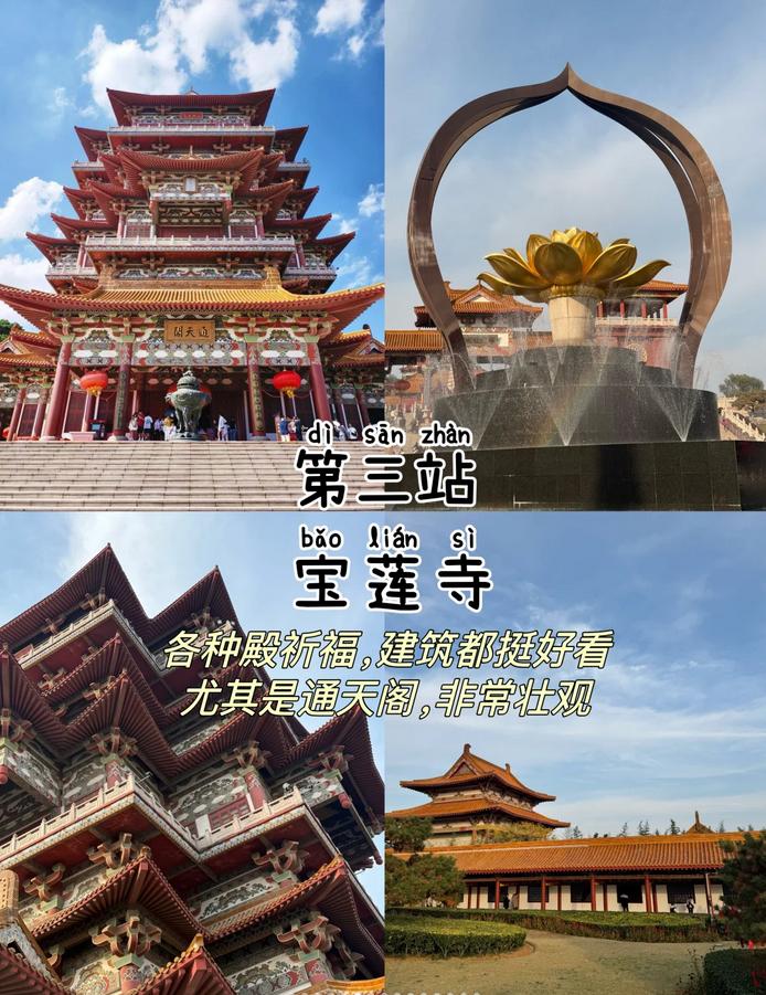 出行🚕🚵:除了前往宝莲寺需要打车外,其他景点都相对较近,可以轻松步行🚶♀️➡️。对于不喜欢步行的人,可以选择共享电瓶车,几分钟到十分钟就能抵达。
