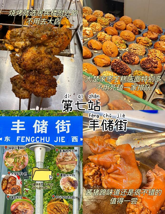 6️⃣丰储街:这里是美食街,有酱香猪蹄、宋记鸡柳卷饼、建国刘记米线等,很多当地人光顾,味道相当不错