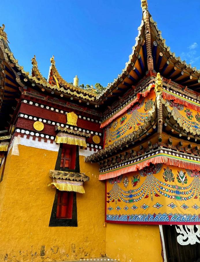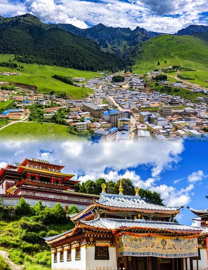 🌸 拉卜楞寺:汉语意为“活佛存在的地方”,被称为“世界藏学府”,坐落于群山之间,是一座庄严的藏传佛教寺院。寺内佛像灿烂,经幡飘扬,神圣的氛围令人心生敬畏。