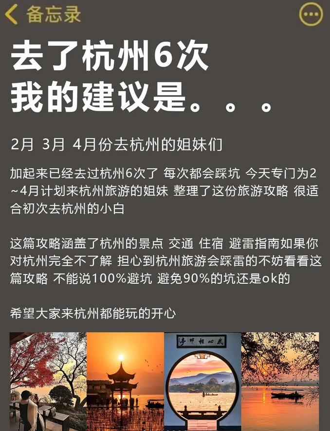 这篇指南包括了杭州的景点、交通、住宿和一些注意事项📝