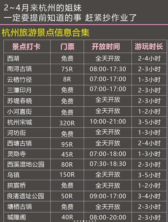 今天特意为计划在2到4月来杭州旅游的朋友们👭