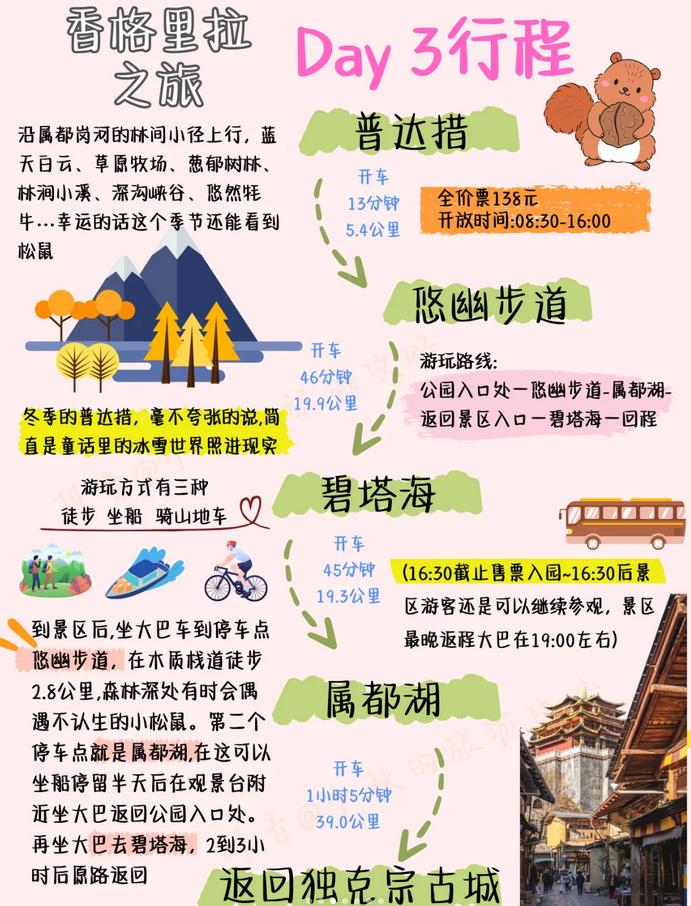独克宗古城、纳帕海、松赞林寺、巴拉格宗、梅里雪山、普达措国家公园、虎跳峡、雨崩村