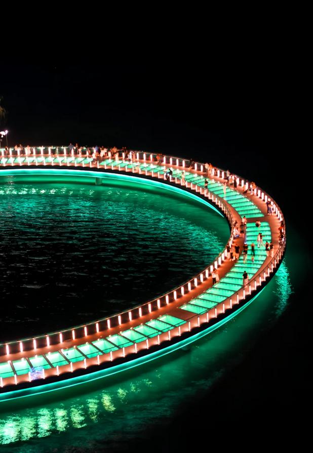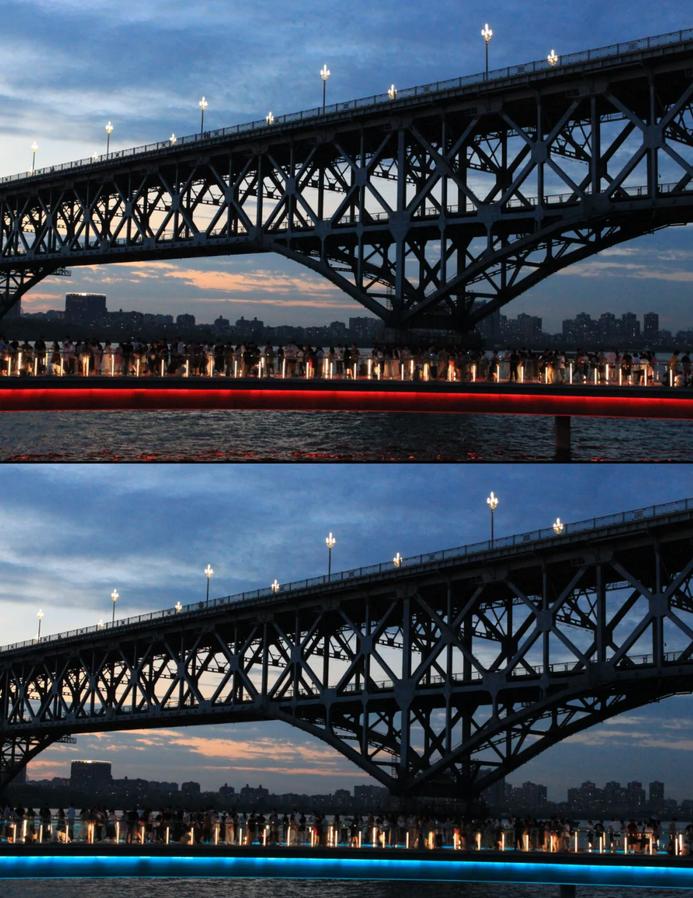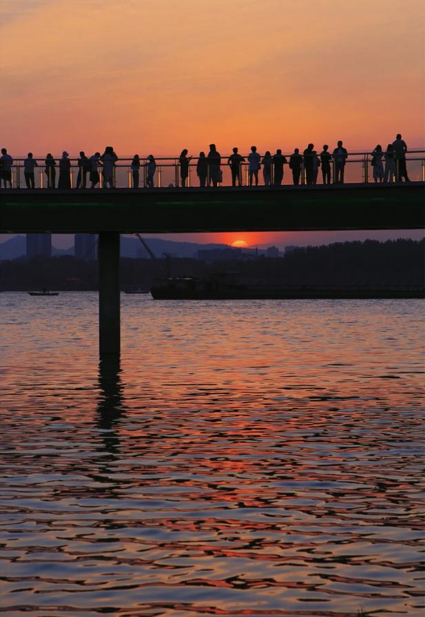 当巍峨的长江大桥、优美的弧形玻璃栈桥、绚丽的灯光🌌、波光粼粼的江面,以及在大桥上疾驰而过的火车🚂与江中穿梭的船只⛴️,在夕阳🌅的照耀下交相辉映时,所呈现出的美景宛如梦境般奇幻~~让酷热的夏季瞬间消散