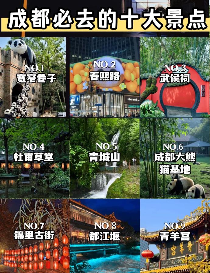 💁🏻♀️在成都游玩时,以下几个景点是必去的,才算不虚此行