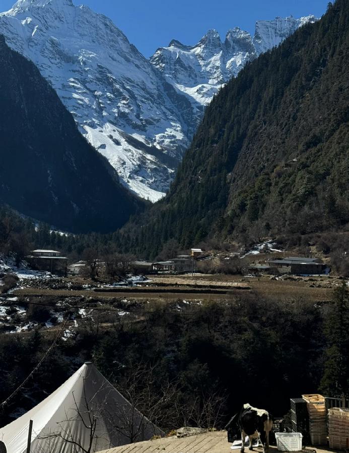 3.飞来寺:离雪山更近,观景平台较宽敞,能够容纳更多游客,正对雪山,视野无遮挡。周边有住宿和餐饮设施,交通也相对便利。如果计划提前一天到梅里雪山住宿,建议选择飞来寺附近的地方。