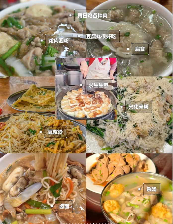 🍚特色美食包括:炝肉泗粉(豆腐丸非常独特,其他地方没有)、求生煎包、扁食、豆浆炒、卤面、杂汤以及兴化米粉。